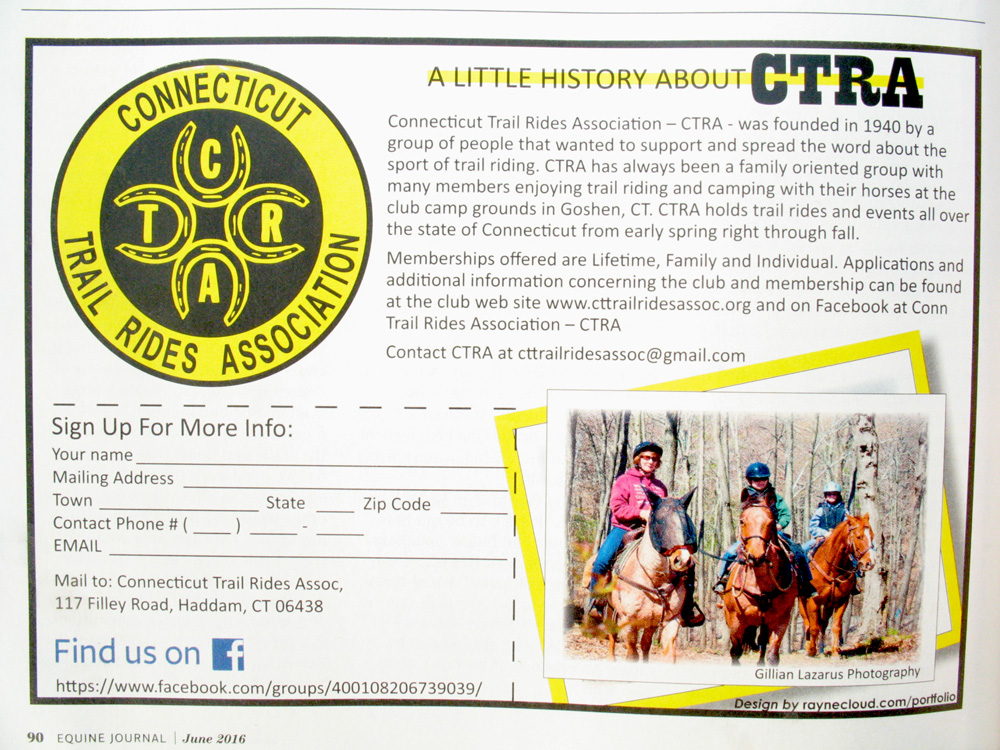 I was approached to create an ad for the CTRA to help drive membership. This ad appears in the June 2016 issue of Equine Journal.