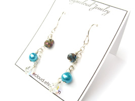 Chalcopyrite "Peacock Ore", Pearl, and Crystal Earrings $20