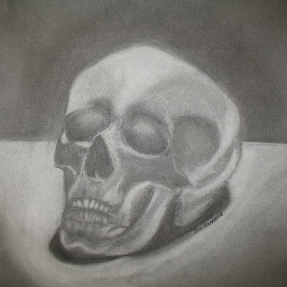 This is a drawing of a skull using powdered charcoal.